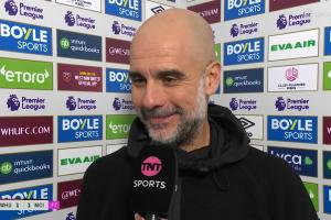 体育资讯03月15日讯 本轮英超结束多场对阵,阿森纳2-0埃弗顿,曼城1-1西汉姆。赛后,瓜迪奥拉接受tnt sports采访。