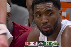 比赛中米切尔的眼睛被打到明显充血,他出场33分53秒,14投4中(三分4中1),罚球13中10,拿到19分8篮板3助攻1抢断1盖帽,正负值-15。