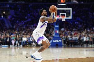 他上半场打了16分钟,17投10中(三分3中2),罚球1中1,拿到23分3篮板。