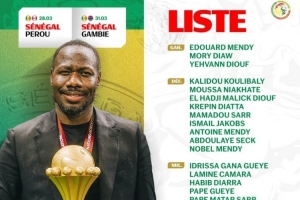 体育资讯3月20日讯 塞内加尔公布最新一期国家队名单,国际比赛日球队将与秘鲁、冈比亚交手。