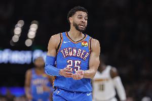此役雷霆后卫阿杰伊·米切尔频频冲击内线,打了36分钟10投4中,三分1中0、罚球6中6拿到14分2篮板3助攻2抢断1盖帽,正负值+5。