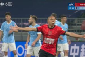 比赛第20分钟,韦林顿·席尔瓦破门帮助蓉城1-1扳平比分,由于此前面部被姜至鹏打到出血,韦林顿·席尔瓦的鼻子下面贴了一个创可贴。