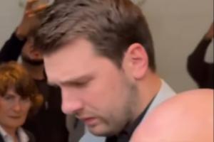 好兆头?东契奇在西班牙为球迷签名 走路步态看起来正常