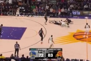 GIF-古德温倒地逼抢库里争球 库里跳赢