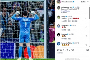 库尔图瓦社媒晒出比赛中庆祝的照片,配文:“这就是皇马!”